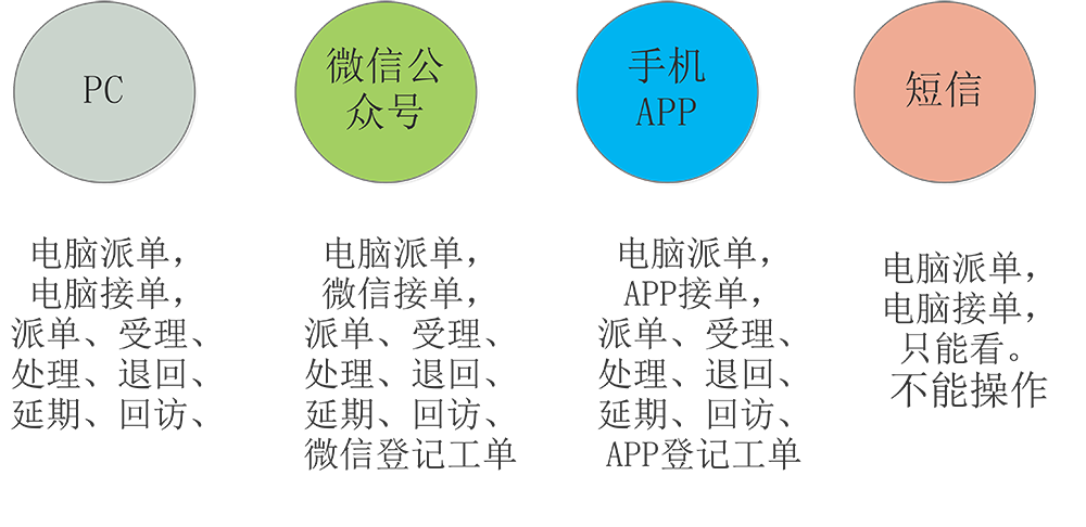 匯尼熱線系統(tǒng)與營業(yè)收費系統(tǒng)、微信公眾號、手機App、短信平臺等系統(tǒng)無縫對接。話務(wù)員可以將維修工單推送到維修人員微信,維修人員在微信上可以看到工單詳情信息,并且進(jìn)行接單,處理,回退,延期,轉(zhuǎn)派等操作。